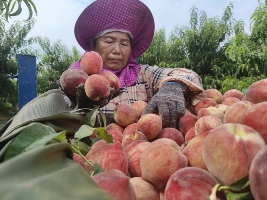 近年来,桐柏县立足区位优势和资源禀赋,大力发展以桃为主的特色林果产业,支持培育农业公司、合作社、家庭农场、种植大户等新型农业经营主体通过土地流转,建设优质桃树种植基地,进行规模化种植。探索“企业+合作社+农户”经营模式,带领群众抱团发展,共同走上致富之路;桐柏县林业局、农业农村局等部门定期选派业务骨干、科技特派员深入田间地头,开展科技下乡服务,为果农提供免费技术培训。通过产业引导和农民培训,桃产业逐渐走向规模化、品牌化发展之路,全县桃园面积达6万余亩,年产鲜桃12万吨,亩均单产鲜桃1500公斤以上,每亩收益达到6000元,桃产业正在成为推进乡村振兴的特色产业,更是人民群众增收致富的“甜蜜果”。