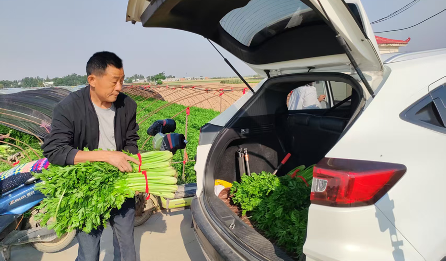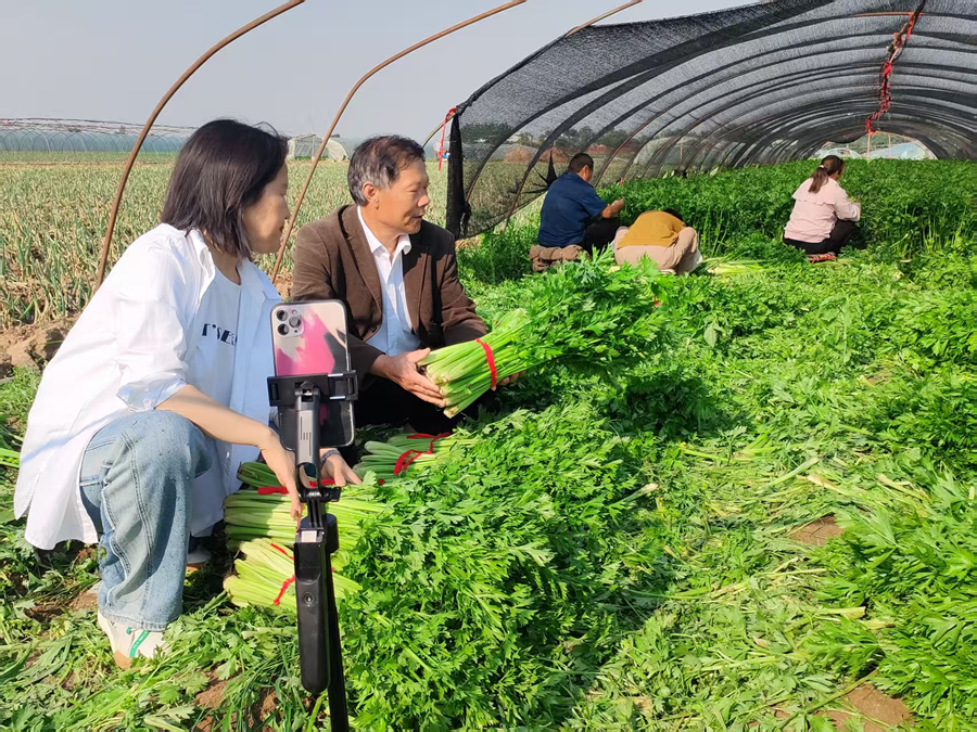 为进一步拓宽芹菜销售渠道,当地通过网络直播、定向采购、商超惠民等形式,确保菜农丰产增收。(李树娴/文 王宗显/图)
