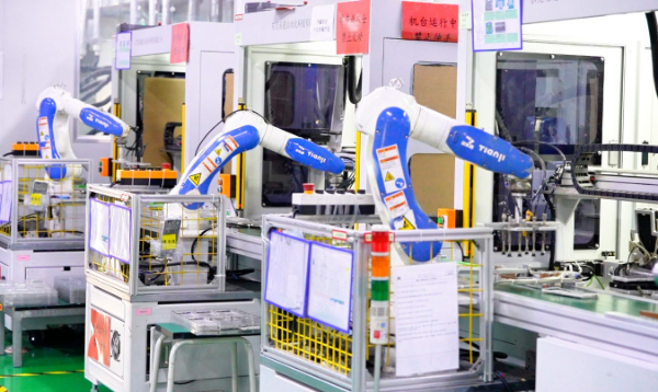 图为鹤壁耕德电子有限公司的生产车间。(张文凯/摄)