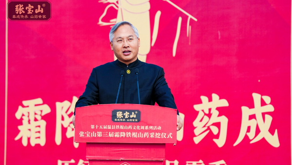 仪式上,中国农业大学原校长柯炳生、中国农业电影电视中心总编辑刘爱芳、《中国乡村振兴》杂志社总编辑文炜、焦作市怀药行业协会会长郭铁军、京东物流乡村振兴负责人伞明、张宝山品牌传承人张小卫共同执铲,与农户一起采挖出带有典型“铁锈红斑”的垆土铁棍山药,标志着新一季山药的丰收,也传递出对传统种植技艺的坚守。
