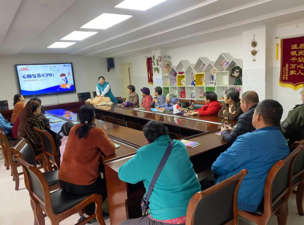 图为鹤壁市山城区红旗社区卫生服务中心,医疗工作人员在开展急救知识讲座。(李佳甜 摄)