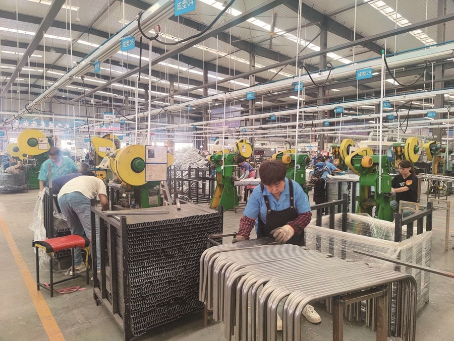 赶订单的户外休闲用品企业生产车间 通讯员 李亚超摄