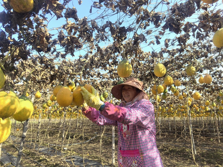 瓜蒌丰产,村民受益。从最初的翻土,施肥,到日常的管护,夹枝,再到如今的采收加工,基地常年为村民提供稳定的务工岗位,让大家实现“家门口就业”。“在这里干活,一天工资100元,一年下来能挣一万多元,不用出门就能赚零用钱,特别方便”。村民李大娘一边分拣瓜蒌籽,一边笑着说。