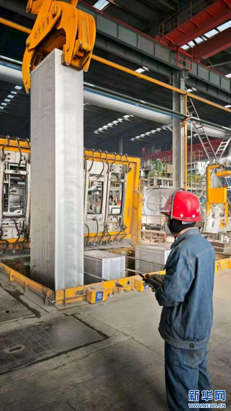 11月27日,在三门峡市渑池县,河南希格腾华新材料有限公司的工人正在查看生产情况。王超 摄
