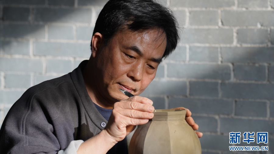 图为孔春生在修坯。王晓飞 摄