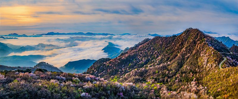 这是河南省新县黄毛尖山,大别山主峰之一(2023年4月8日摄,无人机照片)。新华社发(韩家东 摄)