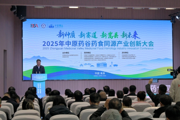 12月19日,2025年中原药谷药食同源产业创新大会在河南省洛阳市嵩县举行。大会以“新种质、新赛道、新嵩县、新未来”为主题,汇聚院士专家、行业协会代表、企业及金融机构负责人等,共商药食同源产业创新发展新路径,助力中原药谷高质量发展。