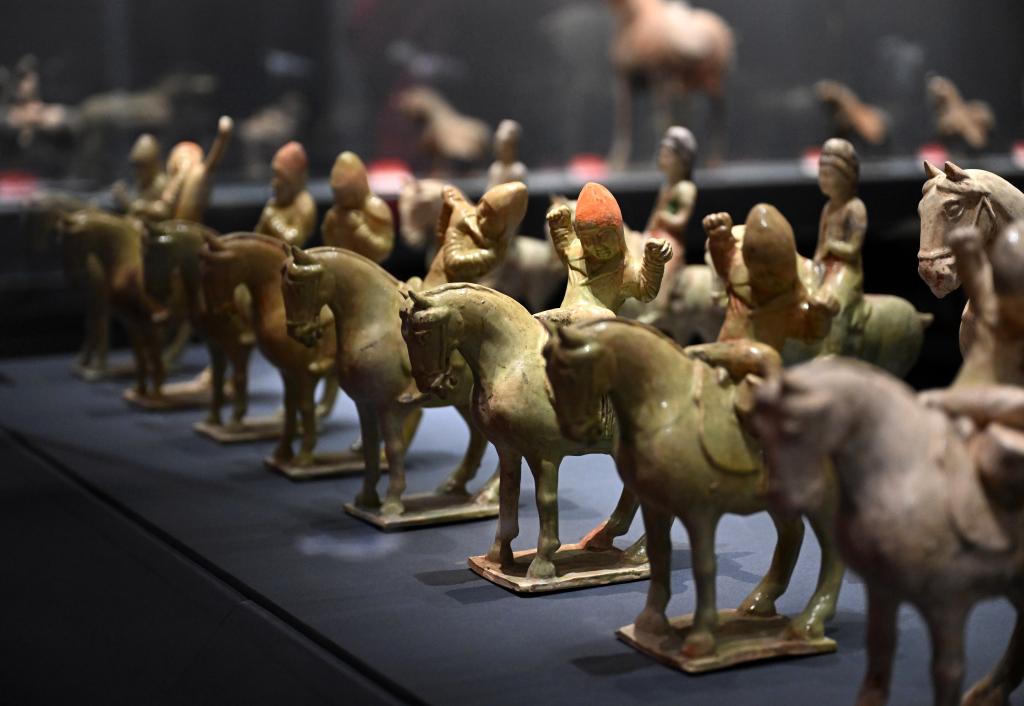 当历史进入盛唐,展厅里,马球、马术、舞马、马上乐等题材的文物集中呈现,千年前的盛世繁华拉至眼前。