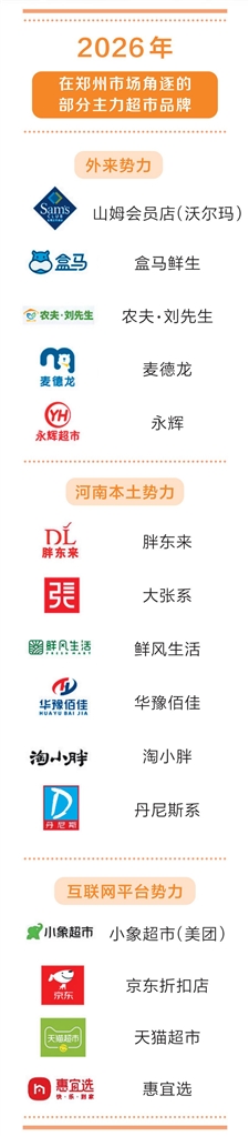 胖东来、鲜风生活、华豫佰佳、淘小胖、农夫·刘先生、山姆会员店(沃尔玛)、大张、麦德龙等各路商业资本已完成集结聚势,一场行业大战正徐徐拉开序幕。无论是参战主体的数量规模,还是单座城市承载的超市竞争密度,郑州都足以比肩国内一线城市水平。