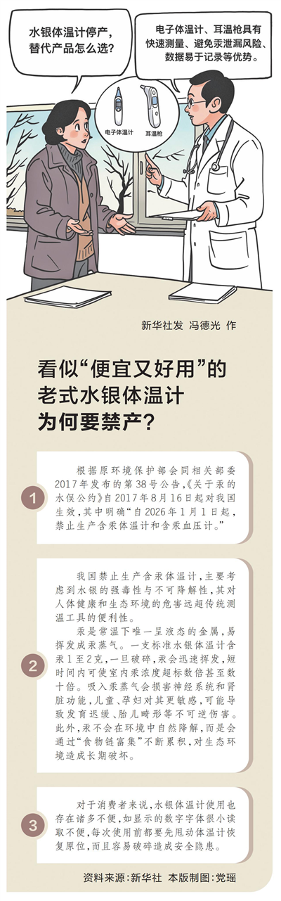 在这场静悄悄的温度计更迭中,一种更深层的转变正在发生。一位公共卫生学者指出,水银体温计的退场,不只是一种产品的替换,更是一个时代的嬗变。从药店货架到医院病房,电子化、数字化的健康管理方式正逐步渗透生活,远离汞污染、走向更安全便捷的医疗环境,已成为不可逆转的潮流。(记者 李晓敏 实习生 项馨雨)