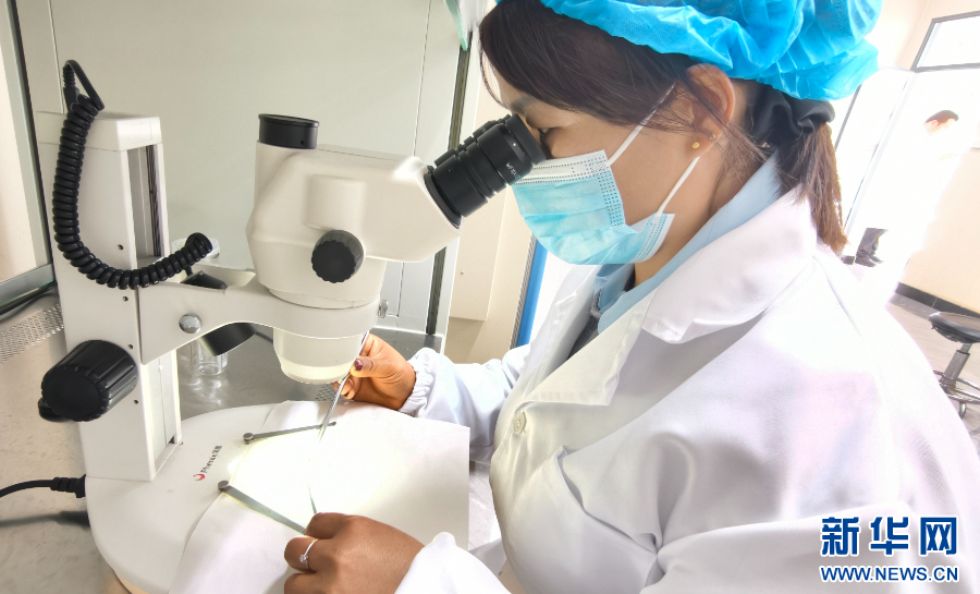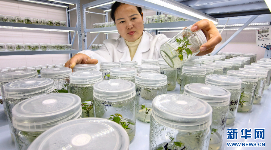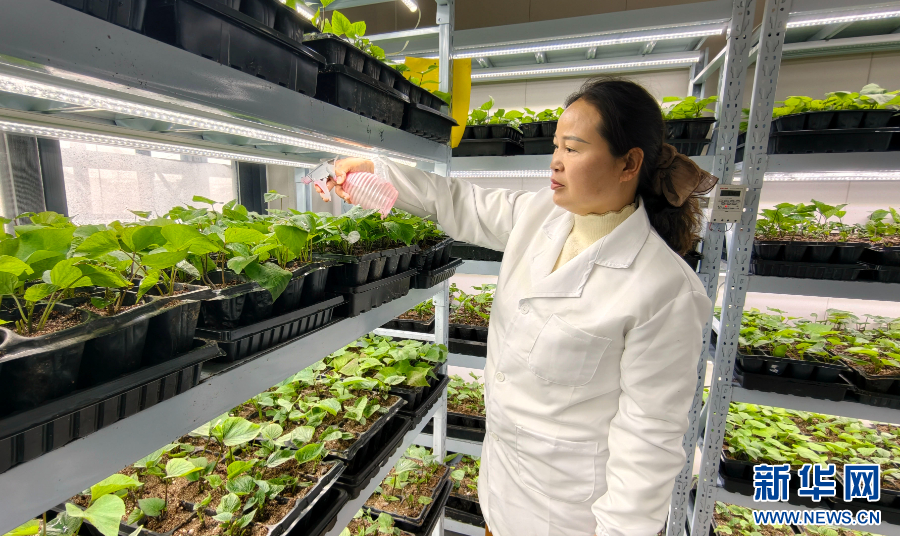 1月7日,在河南省洛阳市汝阳县中原红薯种业中心,工作人员正在开展红薯苗培育工作。中原红薯种业中心是优质红薯苗培育基地,配备有无菌组培室、现代化连栋温室、日光温室、合作育苗大棚等设施。