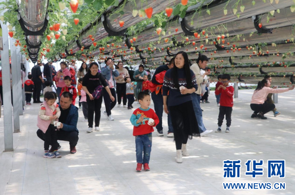 图为游客在商丘市夏邑县太平镇龙港湾空中草莓馆参观游玩。(受访者供图)