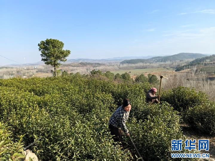 新华网郑州1月30日电(记者吴刚)寒冬晴日,千里淮河源头的河南省南阳市桐柏县,山岭丘壑间的茶园绿意盎然。安棚镇李湾村种茶大户刘沙在茶园里除草松土,指尖拂过茶树梢:“冬管到位,来年春茶才能旺。”
