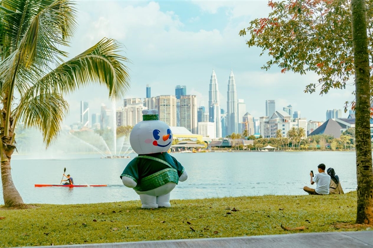 在马来西亚身穿当地特色服饰的雪王。 本报资料图片
